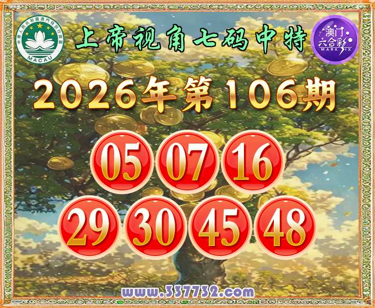106期: 上帝视角 七码中特【05.07.16.29.30.45.48】开:22